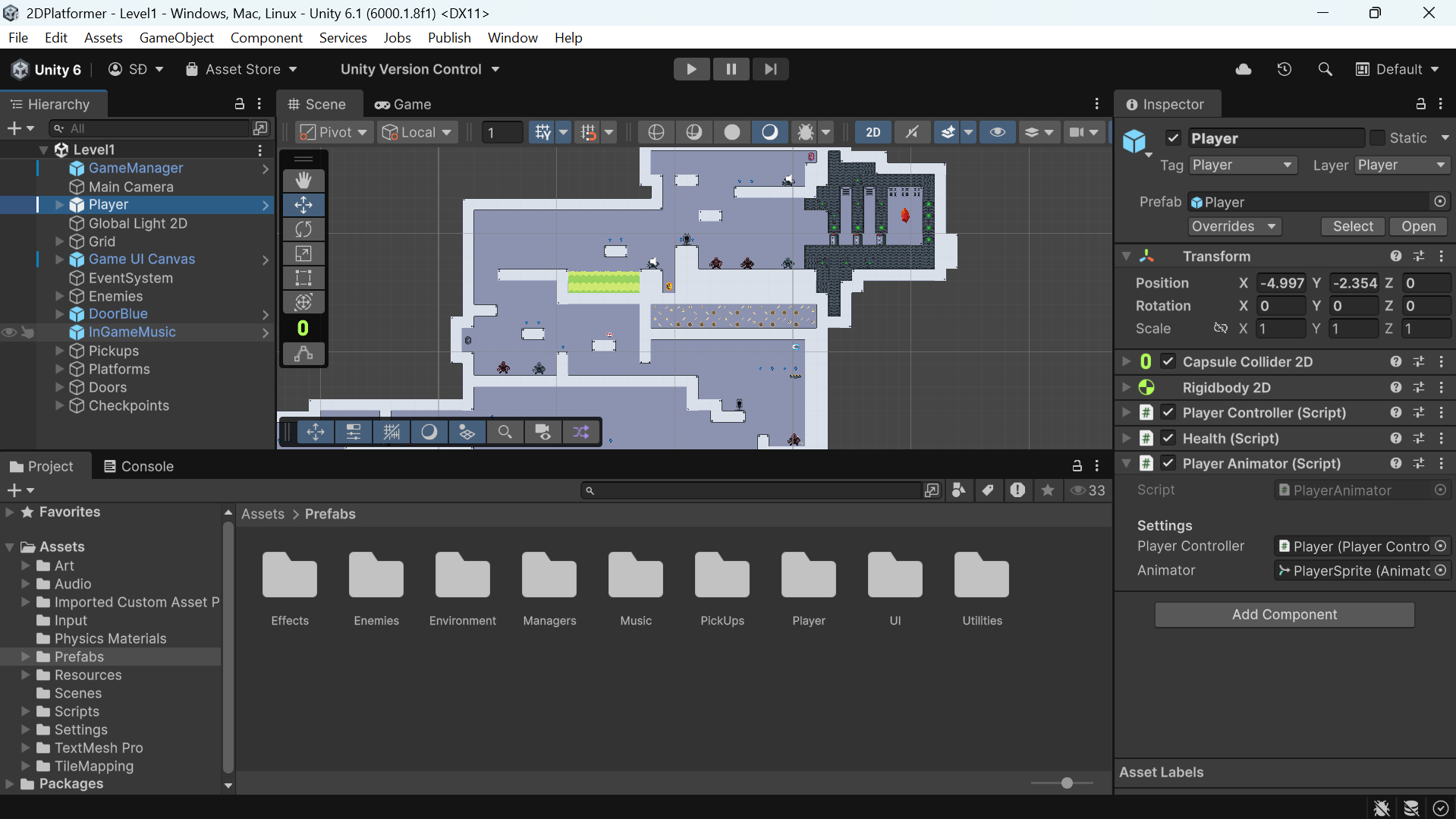 - Dùng phím A, D, Space để di chuyển, nhảy; phím J để bắn đạn, mỗi score thu được giúp tăng lượng đạn cho người chơi.